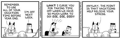 so when the following strip appeared in the paper, i laughed knowingly at it’s new-found relevance, but also secretly rejoiced that i no longer worked for a company in which it took an act of god to schedule any vacation in advance, and if you wanted BOTH thanksgiving and xmas off, well, apparently i just did not know the right people to sleep with to make this happen.